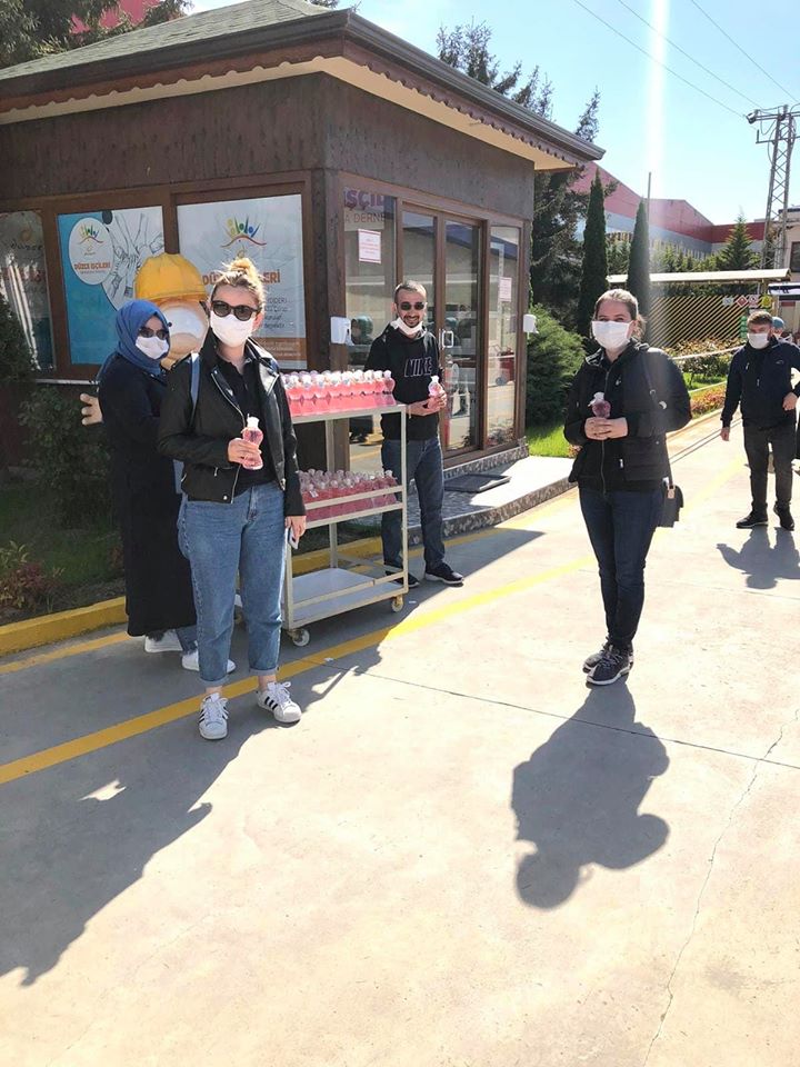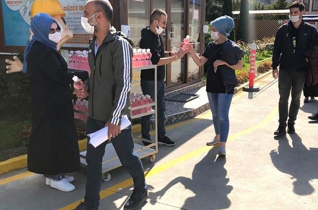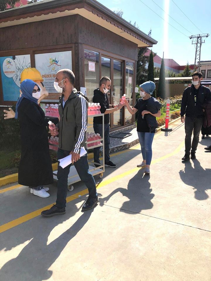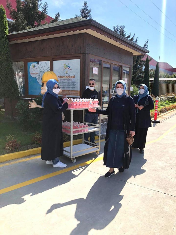 Düzce İşçileri Dayanışma Derneği (DİDER) çalışan anneleri unutmayarak fabrika önlerinde kadın işçilere kolonya dağıttı.