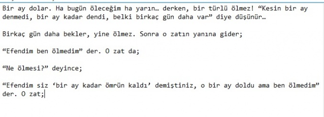 Birkaç gün daha bekler, yine O-lmez. Sonra o zatın yanına gider;
