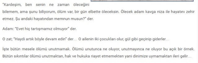 "Kardeşim, ben senin ne zaman O-leceğini bilemem, ama şunu biliyorum, O-lüm var, bir gün elbette O-leceksin. O-lecek adam kavga niza ile hayatını zehir etmez. Şu andaki hayatından memnun musun?" der.