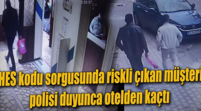 Bolu’da otele giriş kaydı yaptırdığı sırada HES kodu sorgusunda riskli çıkan vatandaş, otel sahibinin polisi arayacağını söylemesi üzerine otelden hızla uzaklaştı. Riskli şahsın vurdumduymaz davranışı otelin güvenlik kameralarına yansıdı.