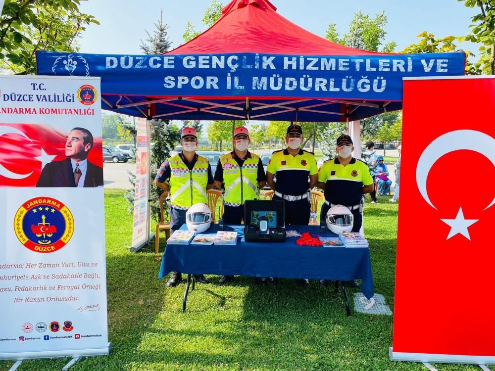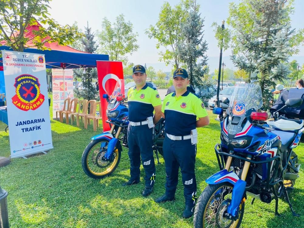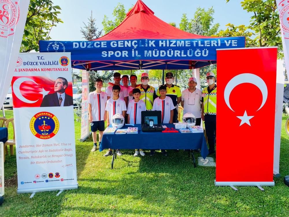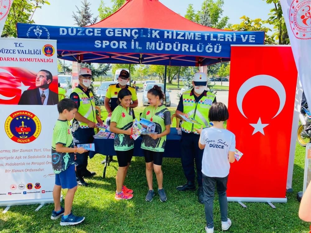 Faaliyete katılan sporcular, görevliler ile diğer misafirlere trafik bilincini oluşturmak için Düzce İl Jandarma Komutanlığı’na bağlı trafik timleri de bölgede stant açtı.
