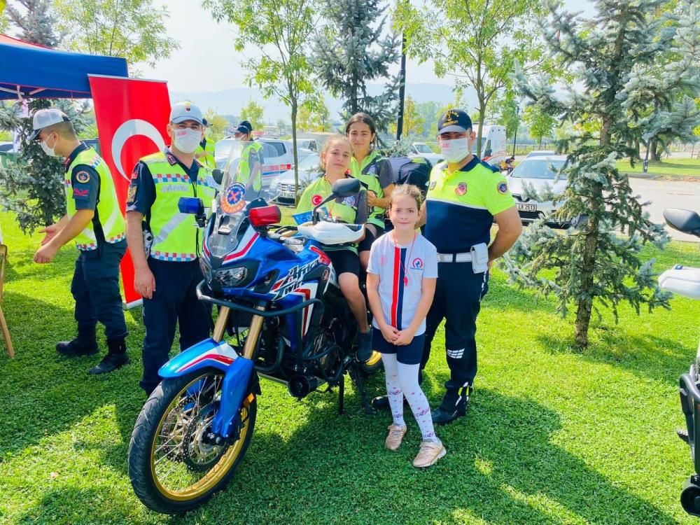 Her bir katılımcıya tek tek trafik bilinci ile ilgili bilgilendirmelerde bulunan Düzce İl Jandarma Komutanlığı Trafik Şube Müdürlüğü’ne bağlı Jandarma trafik timleri çocuklara çeşitli hediyeler dağıttı.