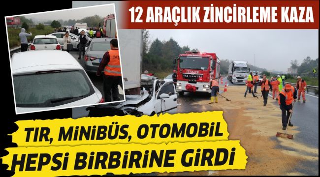 TEM otoyolu Gümüşova rampalarında bir tır bir minibüs ve 10
